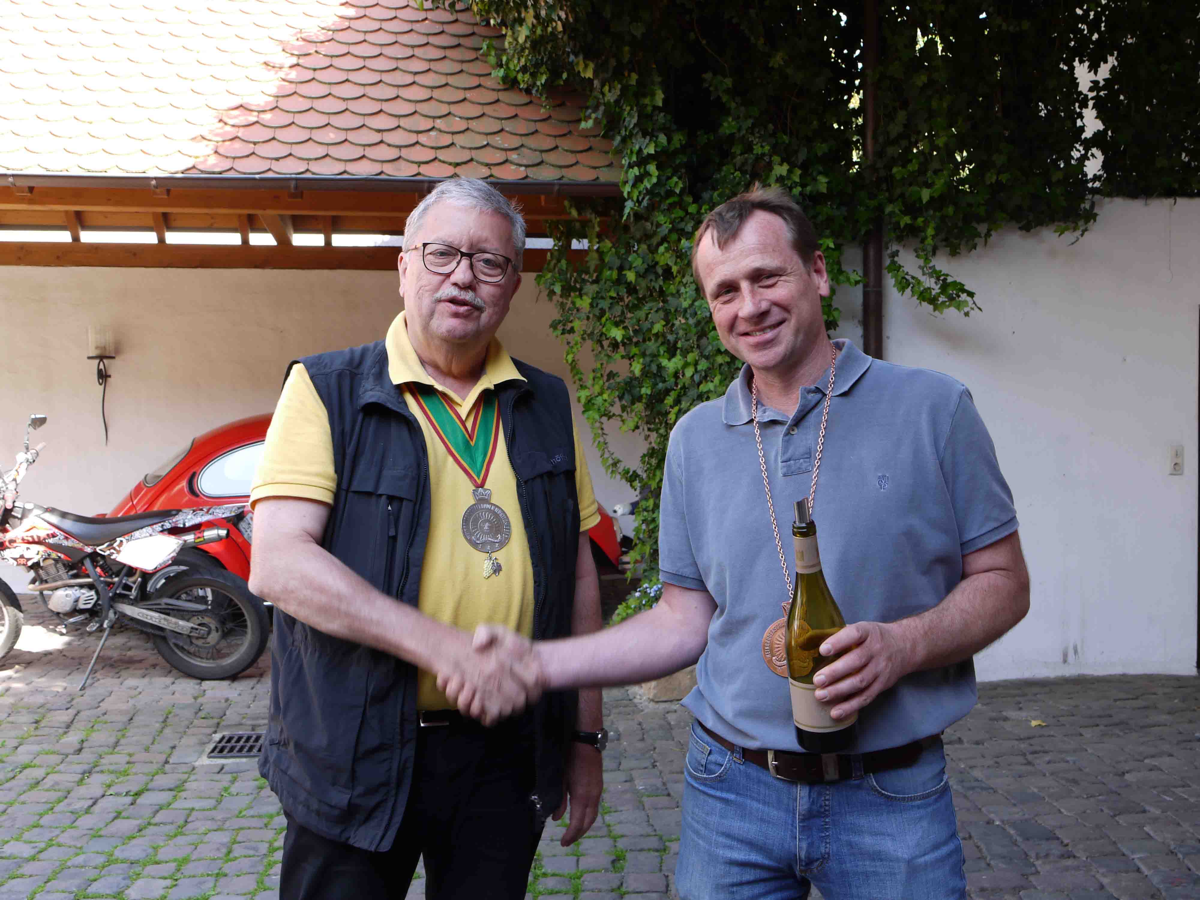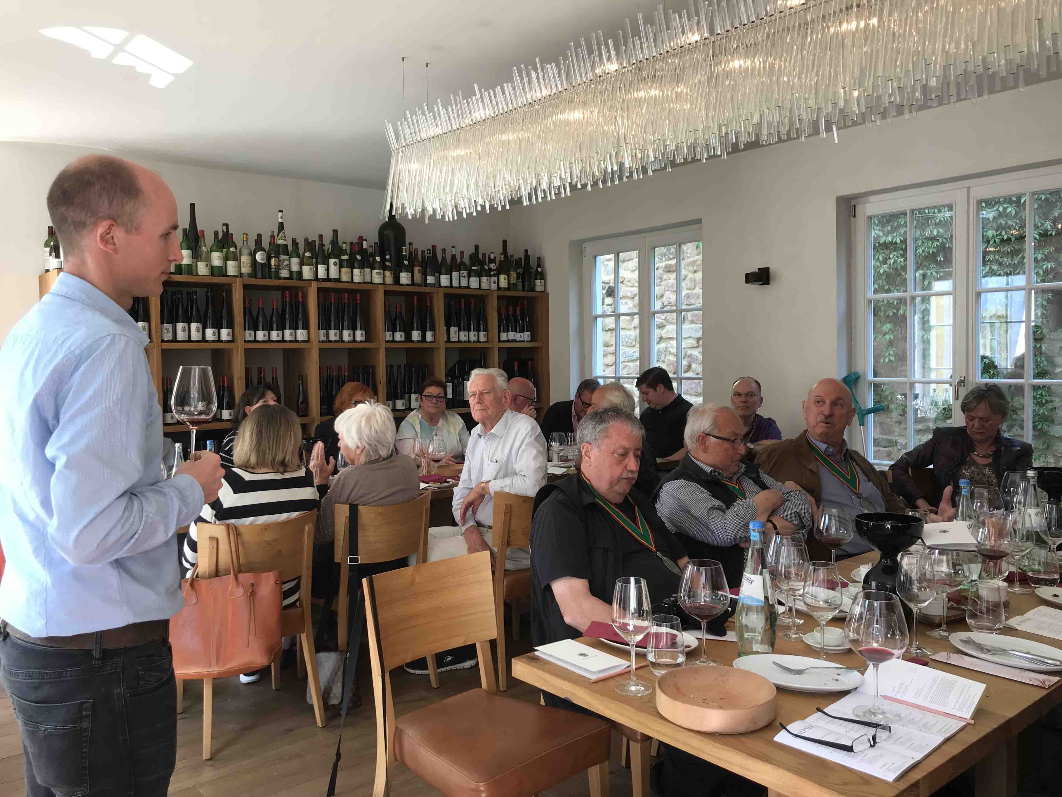 Am Nachmittag brachte uns der Bus nach Schweigen in die Südpfalz, wo wir im Garten des Weingutes Bernhart das ganze Spektrum dieses tollen Winzers zum Probieren bekamen. Ob Muskateller, Auxerrois, diverse Rieslingtypen wie Spätburgunder, alles auf hohem Niveau. Entsprechend wurde durch die Weinbrüder dann auch eingekauft.