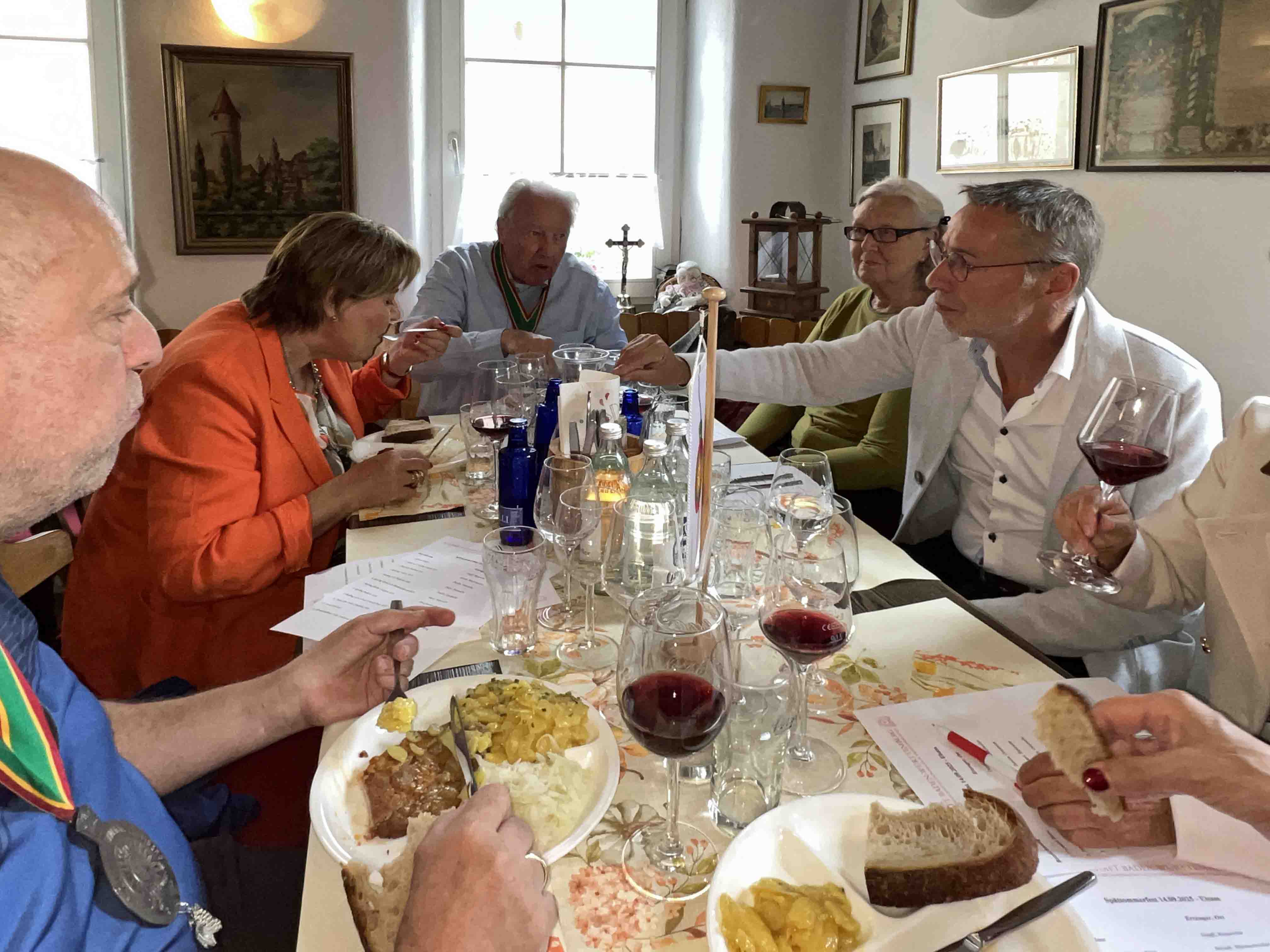 Begleitet von den Grillkünsten unseres Weinbruders Rudi konnten 12 feine Tropfen von zum Teil weltbekannten Weingütern verkostet werden. Nach einem Pinot Noir von Straub als einzigem Rotwein folgten ein Chasselas von Zusslin sowie diverse Rieslinge von Hugel, Zusslin, Agape, Zind-Humbrecht, Trimbach und Chapoutier aus bedeutenden Lagen. Mit zwei gehaltvollen Pinot Gris und einem Gewürztraminer vergleichbarer Power der Weingüter Dopff und Weinbach endete dann mit einem herzlichen Dankeschön an unsere Gastgeber Hans-Josef und Rudi ein äußerst stimmungsvoller Nachmittag.